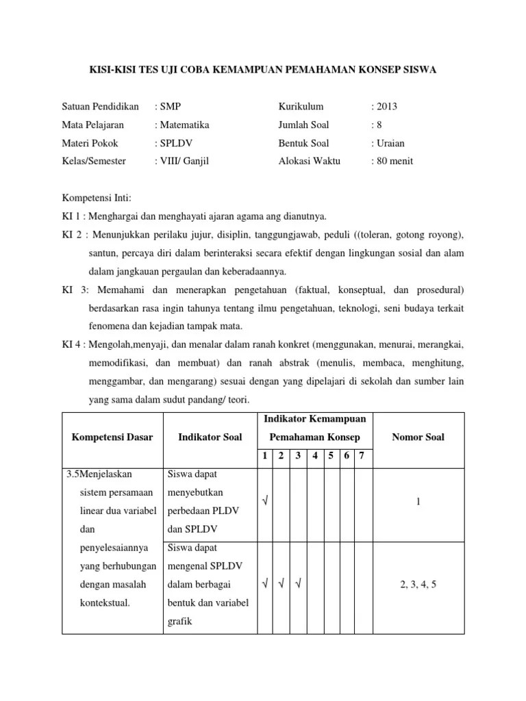 Berikut ini contoh latihan soal cerita spldv sistem persamaan linear dua variabel matematika kelas 8 kurikulum 2013 dan pembahasannya. Pada materi sistem persamaan linear dua variabel kelas viii dengan . Contoh soal latihan matematika teorema pythagoras kelas 8 smp. 2013 pilihlah salah satu jawaban yang paling tepat, dengan memberi tanda silang pada huruf a, b, c atau d pada lembar jawaban . Soal matematika smp sistem persamaan linier dua variabel spldv by hasanlina2007 in types.