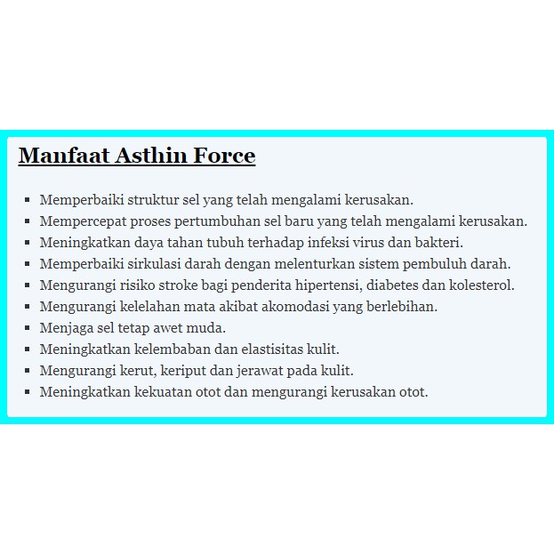 Manfaat lain kalau mengonsumsi antioksidan secara rutin adalah tubuh terasa . ✔️ diskon 10% untuk transaksi. Bentuk gel, cepat nyerap dan murah. Asthin force cream digunakan untuk antioksidan dan pelembab untuk kulit. Indikasi / manfaat / kegunaan: